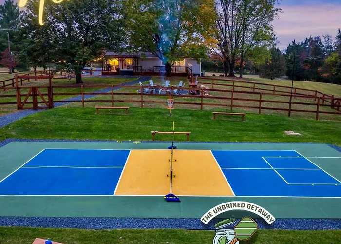 La villa The Unbrined Getaway~Pickleball~Hottub~Movies~Dogs Springfield está situada a 4 km de la Mansión Darkwood y ofrece una bañera de hidromasaje, garantizando una estancia relajante.